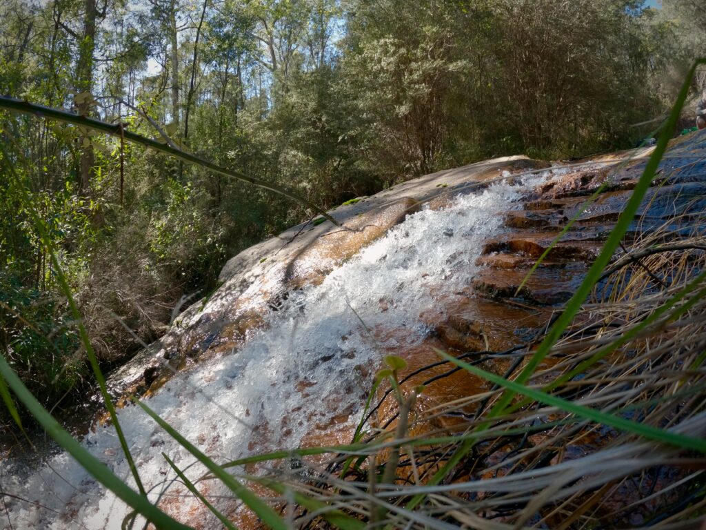 As we continued on, the sound of the creek grew stronger and we spotted a lovely lunch spot on the granite with a small waterfall. We managed to scramble down to it. Was this Nug Nug Falls?