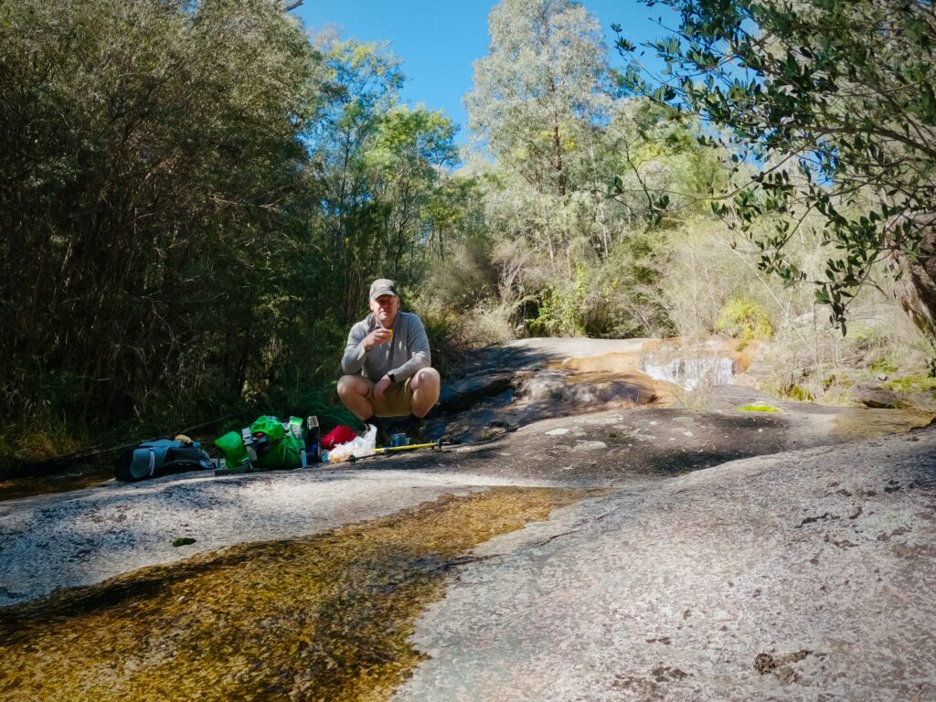 Even if it wasn’t the falls, it was pretty clear that for us it was going to be :-). We didn’t feel like pushing on through the increasingly thick scrub so we sat down and enjoyed our packed lunch. I made myself a #coffeeoutside with my nifty little Wacaco Nanopresso while James scrambled around trying to find a good vantage point for a photo of the waterfall.